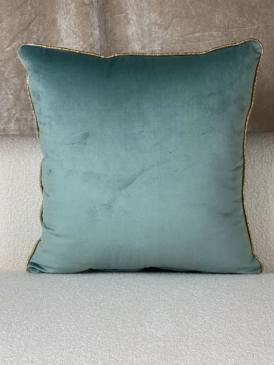 COUSSIN VELOUR VERT EAU / DORÉ
